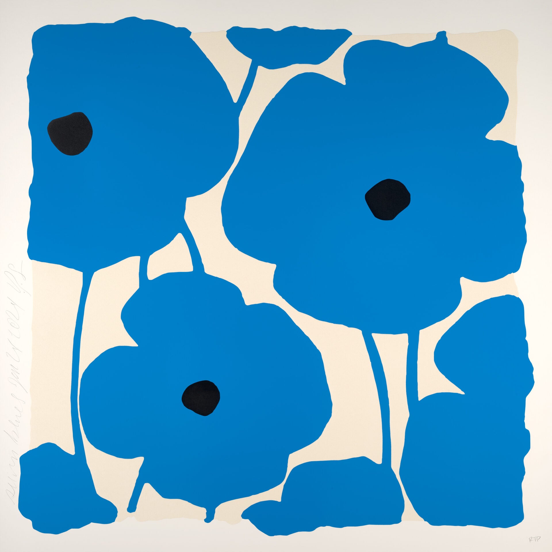 Medium: Color silkscreen with enamel inks, flocking and tar-like texture on Rising 4-ply museum board.