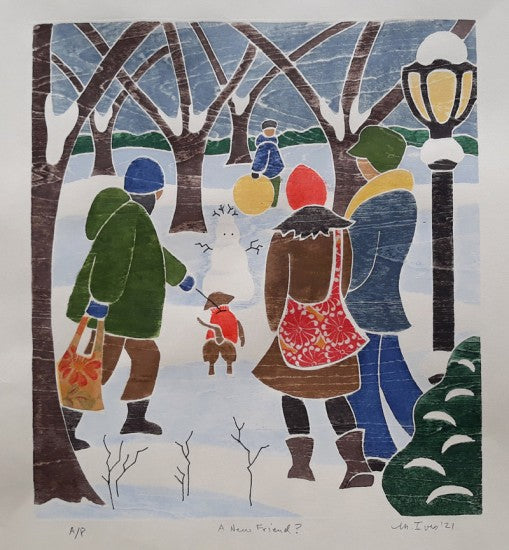 Medium: White-line woodcut on Japanese Torinoko paper with college and pen and ink