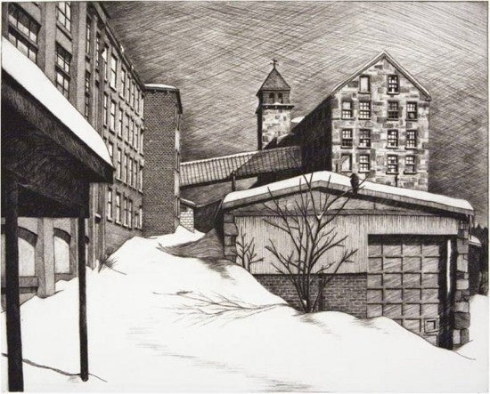 “Snowdrifts at Essex Mill [Newmarket, NH]”